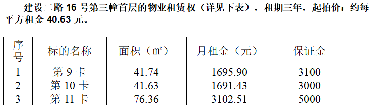 建設(shè)二路16號第三幢首層商鋪租賃權(quán)競拍